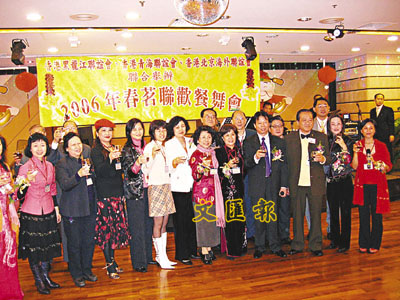 【本報訊】(記者 施立偉)香港黑龍江聯誼會、香港青海聯誼會及香港北京海外聯誼會日前假座灣仔全聚德酒家聯合舉辦「2006年春茗聯歡餐舞會」,應邀出席來賓有:黑龍江省外國專家局局長徐宏光,黑龍江省政協委員李鉅林、李苑輝、劉臣,北京海外聯誼會駐港辦事處主任孫潔騰以及香港各社團領袖,賓主歡聚一堂,載歌載舞,歡度一個愉快晚上。
