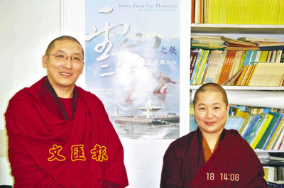 ■喇嘛達哇(左)和永松法師介紹西藏佛教文化藝術來港演出。
