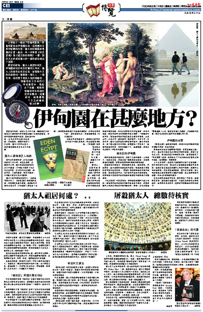 上帝造人,做出了亞當和夏娃,亞當和夏娃在伊甸園生活。這是舊約全書所記載的內容。猶太教的聖經就是舊約全書。最近,有一本新書《埃及禁果》像《達文西的密碼》一樣,對於天主教或者猶太教一貫的說法提出了質疑。