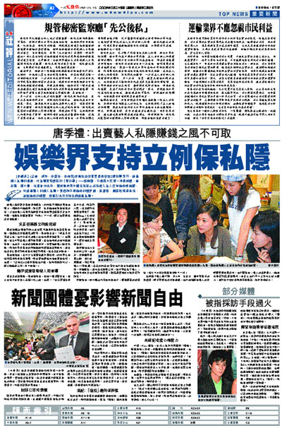 吳彥祖指出,在不少先進國家或外國城市,政府早已有法例保障市民的私隱權,但在香港卻並未有相關的法例,他說:「之前ICAC進行竊聽也不能,為何傳媒則可以,所以好應該立例,訂下底線。」