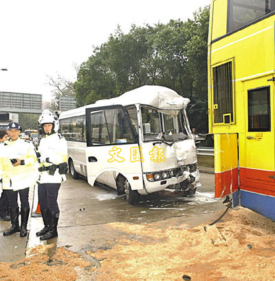 據港島交通執行及管制組第2隊高級督察華詩誠表示,保母車沿慢線駛經上址時,疑因快線一輛私家車切線,何扭左萼{避,失控撞向巴士站凹位一輛正在上落客的城巴,城巴被撞推前,撞向前方同時上落客的九巴。