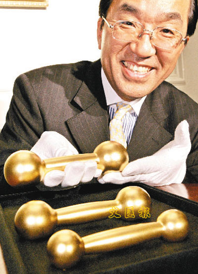 纖體健身已成時尚,讀者又有否想過以純金啞鈴鍛煉體格?日本田中貴金屬珠寶公司將於近日推出純金啞鈴,重量分別由一至三千克,售價二百至七百萬日圓(最貴約四十六萬港元)。雖說健康乃無價之寶,此啞鈴會否為用家帶來「黃金比例」體格呢﹖法新社