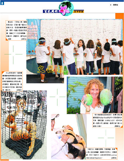 別以為綠綠紅紅就是西瓜,其實它是由夏威夷居民Kailua-Kona於去年十月收成的特大芒果,重達五磅,大約有2.5公斤,成半包米重。這隻大芒上得報紙,當然又破了健力士紀錄大全啦。 (美聯社)