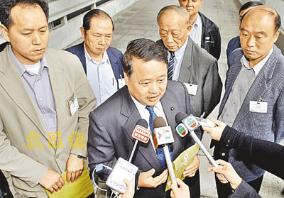 ■黃容根與一批雞農下午約見衛生署。 本報記者李志樑 攝