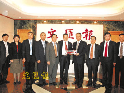 中遠(香港)集團總裁劉國元、副總裁周連成、中遠國際董事副總經理林立兵、中遠(香港)集團總裁辦總經理李強等到訪本報,與本報董事長兼社長張國良、副社長潘一黎、總經理仇學忠等拍照留念,劉國元總裁並向張國良社長致送船舶模型。本報記者卓建安 攝