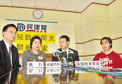 民建聯3月份向823名家長進行了問卷調查,發現年幼子女的教育開支為48.4%的家長帶來沉重負擔,佔其家庭收入2成或以上。75.3%的家長認為政府對幼兒教育的承擔並不足夠,96%贊成把免費教育伸延至幼兒教育。此外,50.1%家長希望政府可以放寬現時的學費減免計劃,令更多家長可以受惠。44.4%家長又相信,若政府增加了資助幼兒教育,應該可以鼓勵市民生育。