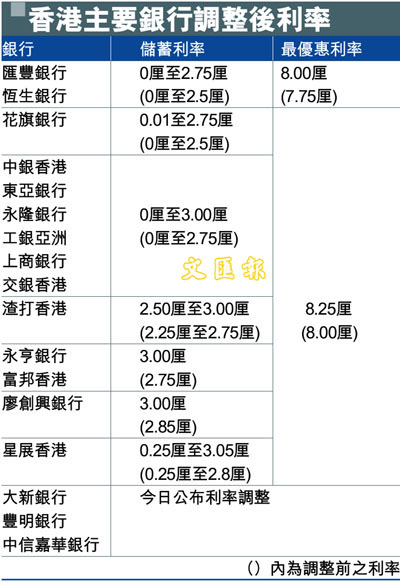 香港主要銀行調整後利率 (圖)