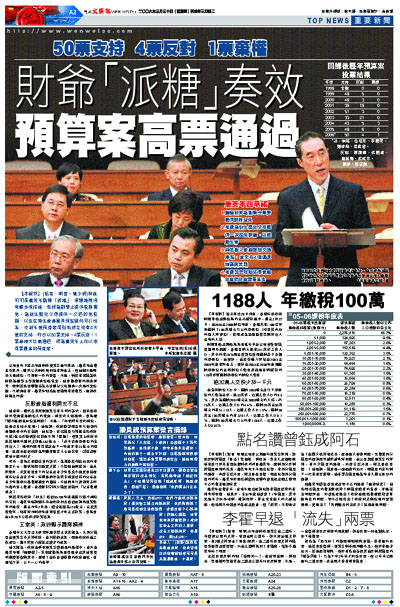 【本報訊】(記者 明言、曾少研)財政司司長唐英年臨陣「派糖」,承諾將積極考慮多項措施,包括為副學士提供稅務寬免、為新生嬰兒父母提供一次過的免稅額,以及在港生產建屋用預製組件可行性等,令新年度預算案得到包括立法會4大黨的支持,昨日以50票支持、4票反對、1票棄權大比數通過,成為唐英年上任以來得票最高的預算案。