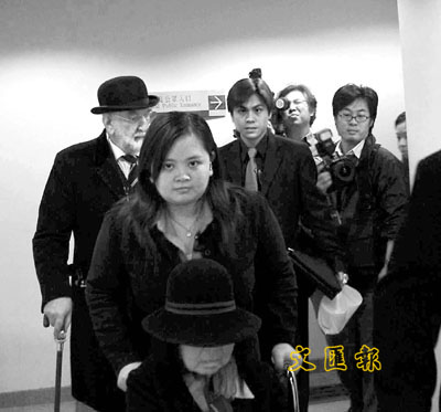 ■退休法官李柏儉及其妻馮閏禪(坐輪椅)同就騙取綜援案出庭。