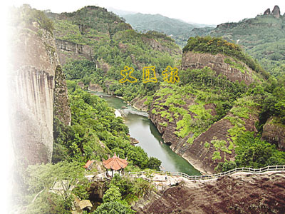 「一線天」乃武夷山另一著名景點。據說武夷山的岩層,經流水長年累月的侵蝕,令岩石頂上的裂縫慢慢擴大。加上地殼移變,形成岩洞頂上一條長達百米的隙縫。每每陽光滑過此隙縫,透進黑暗的岩洞裡,便形成「一線天」這奇觀。