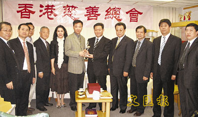 ■孫瑞彬市長(右五)致送紀念品予香港慈善總會。左五為鄭蘇薇主席。 本報記者沈清麗 攝