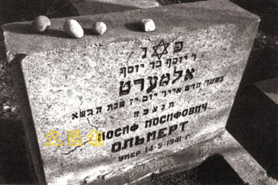2004年6月,奧爾默特以以色列第一副總理兼工貿部長的身份第一次來到哈爾濱,實現了幾十年一直想給祖父母掃墓的願望。在哈爾濱期間,他一直非常激動,尤其是看到哈爾濱的猶太公墓、猶太教堂、猶太學校、猶太免費食堂和慈善院等都得到了妥善修繕和保護後,十分感動,對黑龍江省社會科學院猶太研究中心舉辦的「猶太人在哈爾濱」大型圖片展覽更是讚不絕口,並連聲表示感謝。在哈爾濱猶太人公墓裡,奧爾默特找到並憑弔了祖父母和親人的陵墓,並依照猶太人的習慣把一些小石頭放在了墓碑上以示深切的懷念之情。他的眼眶中一直噙著淚花,但強忍著不讓眼淚流出來。如今,長眠於此的猶太人後人遍及世界各地。奧爾默特感慨地表示,要把這個信息告訴曾經在哈爾濱生活過的人和他們的後人,讓他們有機會都來這裡看看,因為我們許多猶太人的「根」就在中國,就在哈爾濱啊!