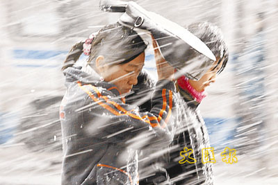 30日,烏魯木齊市下了一上午的小雨,14時左右突然變為漫天大雪,讓出行的市民措手不及。 中新社