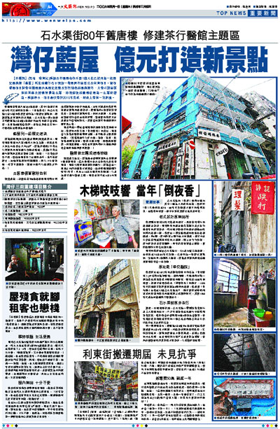 【本報訊】(記者 翁育紅)房協及市建局合作斥資1億元在已被列為一級歷史建築物「藍屋」所在地灣仔石水渠街一帶展開市區活化及保育項目。這項重建項目除會保護範圍內具歷史意義及設計特色的建築物外,又會以該區原有的茶業及醫療背景為主題,將復修後的唐樓發展為一主題旅遊點。房協表示,項目最快會於2010年完成,財政上會有一定虧損。