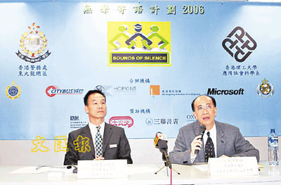 ■東九龍總區防止罪案主任高錫昌(左)和理大教授鄭之灝簡介新「無聲寄語計劃」。