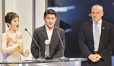 ■劉德華等領獎。 本報記者潘志南 攝