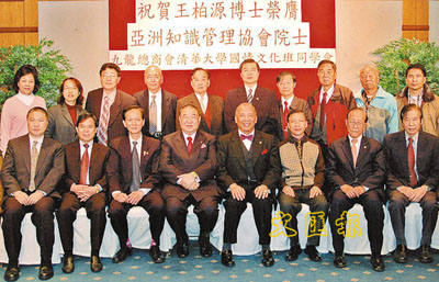 【本報訊】(記者 沈清麗)為祝賀創會副會長王柏源博士榮膺亞洲知識管理協會院士,九龍總商會清華大學國情文化班同學會,日前在京華酒店舉行歡宴。同學會會長鄭君旋席上讚揚王柏源家學淵博,留學加拿大,學有專精,繼承祖業,發揚光大,為不可多得之俊才。