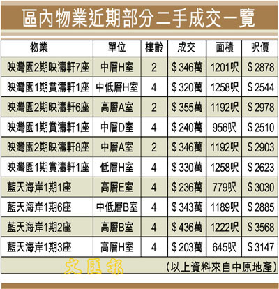 區內物業近期部分二手成交一覽 (圖)