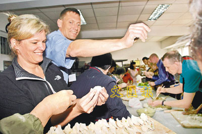 外企老總體驗北京百姓生活。四月四日,丹麥諾和諾德製藥公司的全球高級副總裁們在向北京社區的居民學習包餃子。為了更好的了解中國市場及中國百姓的生活,該公司要求其高級管理人員定期參加與中國百姓的交流活動。 中通社