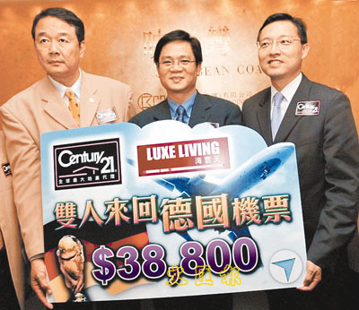 由即日起,凡經世紀21購入海雲天首3名買家,可獲雙人來回德國機票,涉及總值3.88萬元,同時,世紀21參觀買家,可獲贈該行送出玩具熊乙隻,先到先得。