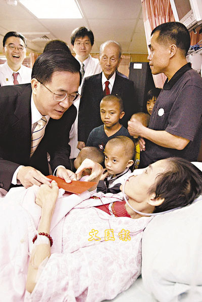 ■陳水扁日前探視罹癌媽媽吳慧萍,落力演親民秀。中央社