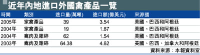 近年內地進口外國禽產品一覽