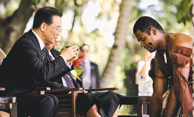■楠迪,溫總在斐濟喝傳統飲品「洋格納」。