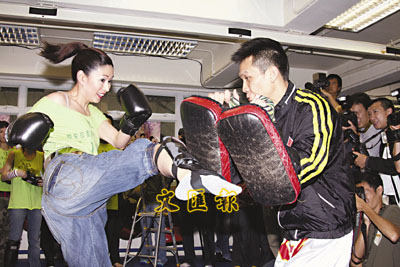 【本報訊】(記者 許紹基)無線新劇《女人唔易做》的一眾演員昨天出席在一拳館中舉行的宣傳活動,眾演員即場試打泰拳,更進行了擊靶及打沙包等比賽,當中以歐倩怡示範擊靶動作時最為危險,差點就踢到和她一同示範的拳手的下陰。