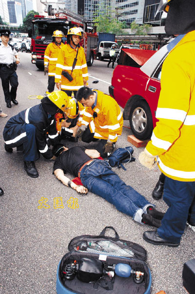 【本報訊】一名紋身漢,因債台高築曾意圖以改名避債,昨午往灣仔入境處辦理領取新的身份證途中,疑有感改名亦無濟於事,在通往入境處的行人天橋上跳橋意圖自殺,復遭一輛的士撞倒捲入車底,嚇煞車上一家四口的台灣旅客,傷者幸命不該絕,由消防員到場將傷者救出送院。受事件影響,告士打道東行交通幾近癱瘓,車龍一度由灣仔伸延至中區畢打街。