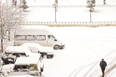 ■新疆阿勒泰地區昨日普降春雪。 新華社