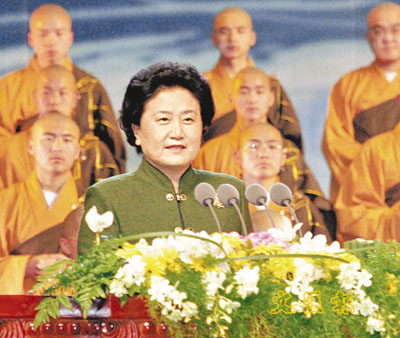 另外,全國政協副主席董建華、浙江省人大常委會主任習近平、中國佛教協會副會長聖輝、第十一世班禪額爾德尼.確吉傑布,以及老撾建國陣線主席西沙瓦.喬本潘、柬埔寨高級大臣兼宗教事務大臣坤杭、越南宗教事務委員會主任何晏詩等出席了開幕式。