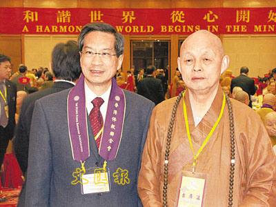 ■香港理工大學校長潘宗光與高僧合影。 本報杭州傳真