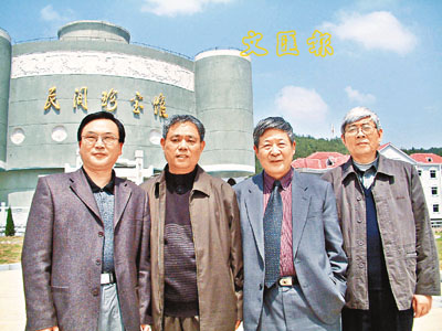 ■向來訪的客人介紹文物,是吳立山(左2)退休生活中的樂事。 沈惠 攝