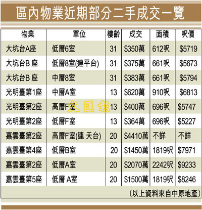 區內物業近期部分二手成交一覽 (圖)