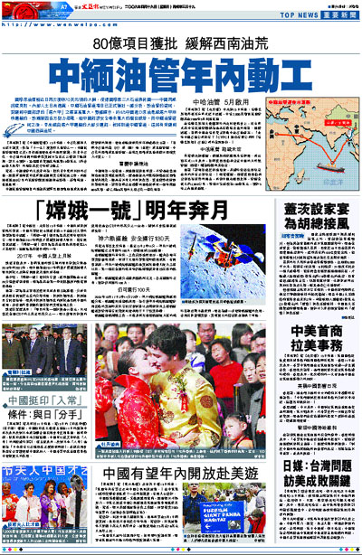 【本報訊】據《中國經營報》15日消息:中石化總部人士近日證實,作為「十一五」規劃四大油管之一,中緬輸油管道項目已於4月初通過發改委的最終審議,來自中石化、中石油的相關的競爭性實施方案也已上報到了能源局。該人士預計,這個總投資額度高達數10億美元(約合80億人民幣)的項目將於今年破土動工。