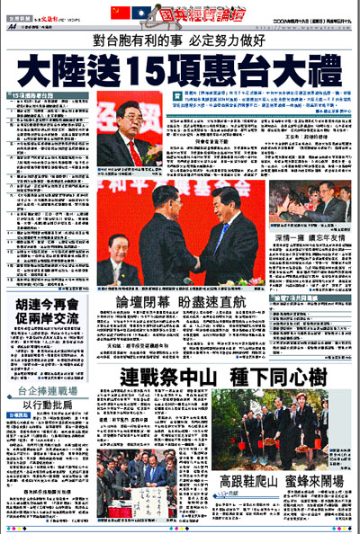 據台灣媒體報道,多個當地電視台將直播「胡連再會」過程。 ■本報北京新聞中心記者劉凝哲