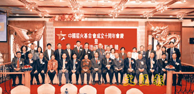 【本報訊】中國星火基金日前舉行慶祝成立10周年會慶暨第4屆理事就職典禮。當日出席會慶的主禮嘉賓有民政事務局何志平局長、立法會范徐麗泰主席、全國人大代表港區召集人袁武、中聯辦新界工作部副部長潘紹新、中國老區建設促進會代表尹誠善理事及社會各界賢達、學者專家、會員及朋友等近300人到賀。