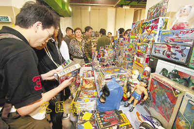 【本報訊】(記者 鄧愷欣)第二屆香港玩具節昨在九龍灣展貿中心舉行,潮流興復古,今年的主題以懷舊玩具為主,當中以星球大戰、幪面超人最受歡迎,也有新版的日本動畫造型模型出售。為吸引更多人士進場,主辦單位更大派電子手錶、哥斯拉等塑膠公仔,大會表示整天共有15,200人進場;有商戶指中午時的營業額已達去年一整天,埋單計數應較去年多一至兩成。