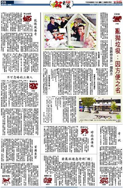 我暫居的小城培斯頓則在路邊樹立起醒目的廣告牌,上面寫著:「Preston all together/ Building a better future !」(培斯頓人共同努力/建設更美好的未來!)英國人的確在行動:在我回國的前夕,培斯頓市政部門給每個住戶發了不同顏色的垃圾箱,開始實行比較嚴格的垃圾分類回收制度。雖然這並不意味著英國的垃圾將就此絕跡,但卻令我對下一次英國之行充滿了期待。