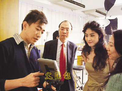 ■陳慧琳拍金至尊廣告,老闆林世榮(左二)探班。