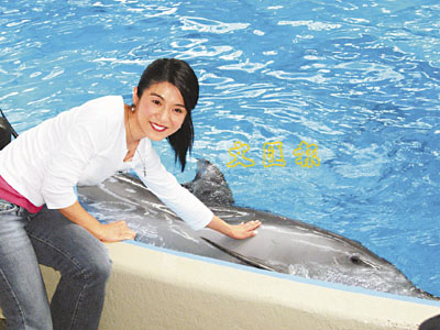 ■海豚沒有鱗,因此楊采妮喜歡逗著玩。
