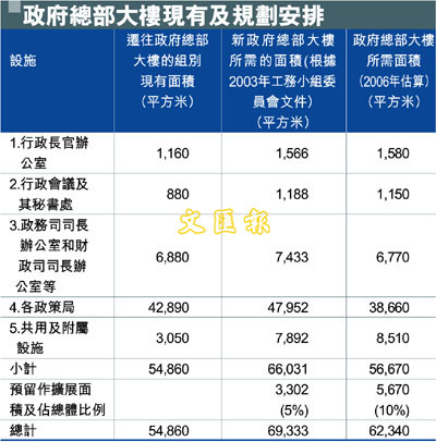 政府總部大樓現有及規劃安排