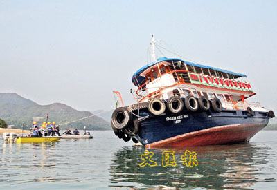 【本報訊】「好彩拜完天后,先至無事!」今日是天后誕,90名誠心善信,昨乘一艘中式小輪往糧船灣天后廟參拜天后吃過齋後,回程途經西貢枕頭洲與白沙洲海面,疑船長不熟該處海面情況,遇上水退,小輪擱淺入水傾側,在危急關頭,船員著船上乘客站到傾側相反方向,平衡船身。善信飽受驚嚇,船長在無計可施下報警求助,由消防船及水警輪到場,將船上97人分批用小艇接返西貢碼頭上岸,事件中無人受傷。