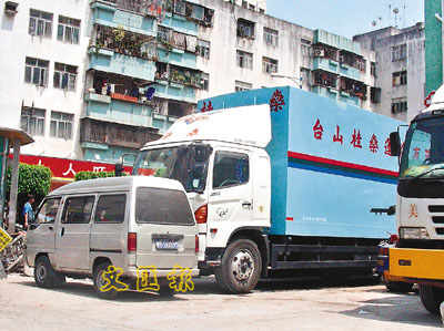 ■被扣押在深圳的貨櫃車。