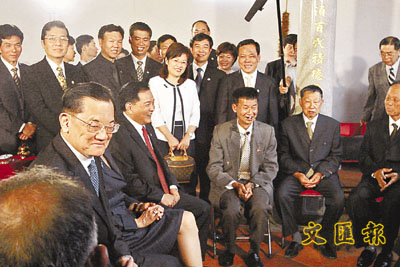 其實,連戰不知道,作為今次連戰祭祖的司儀,連宗和老人幾天前從電視上看到自己滿頭白髮,覺得不好看,特別抽空去染了髮。「我只比連戰大1歲,希望和他站在一起時,自己也能顯得年輕些。」連宗和說。