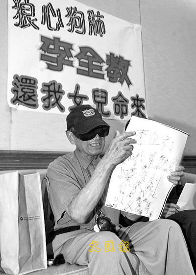 ■楊姓老翁於記者會中出示女兒生前寫的「遺書」,凌亂的字跡指稱李全教讓她心靈受創等字句。中央社