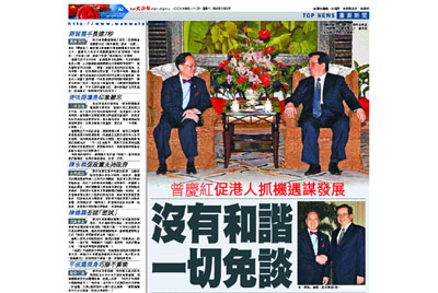 【本報記者曾少妍博鰲21日電】國家副主席曾慶紅今天在博鰲分別會見了出席博鰲亞洲論壇的香港特別行政區行政長官曾蔭權、澳門特別行政區行政長官何厚鏵以及出席論壇的港澳地區工商界代表團並發表講話。他對香港提出兩點希望:一是要抓住機遇謀發展,二是要齊心協力促和諧,並特別希望各界人士繼續支持特區政府及行政長官依法施政,團結各界,「沒有和諧,一切無從談起。」