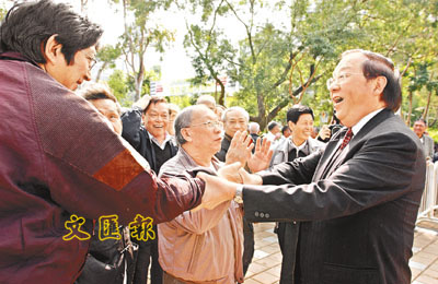 ■鄔維庸出席維園城市論壇後,與場外一班支持者握手及問候。
