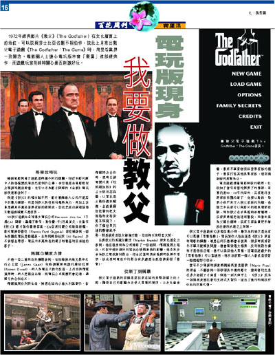 1972年經典影片《教父》(The Godfather)在文化層面上的地位,可以說與莎士比亞名劇不相伯仲,故此上月推出教父電子遊戲《The Godfather:The Game》時,荷里活業界一致關注。電影圈人士擔心電玩版本會「褻瀆」這部經典作,而遊戲玩家則純粹關心是否刺激好玩。