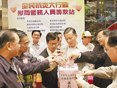 ■沙士襲港期間,鄭耀棠等工會首腦帶頭籌款抗疫災。